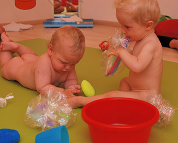 Die PEKiP Treffen dauern 90 Minuten und finden einmal in der Woche statt (außer in den Schulferien). Ihr Kind hat während dieser Zeit die Möglichkeit sich nackt im angenehm warmen PEKiP Raum (ca. 26°C) zu bewegen.